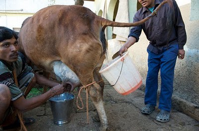 印度教徒尊崇牛,他們不但喝牛奶,很多人還把牛的尿液和糞便同混合香辛料一起攪拌在飲料中食用,認為是健康食品。很多奶製品商店將牛的糞便和尿液放在牛奶和奶酪旁邊出售。保健食品公司甚至將它們製成麥片粥、牙膏和滋補飲料,認為可以治療慢性疾病。