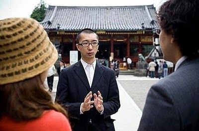 在東京淺草寺外,藤井夫婦待親友們來到後,穿著便服的「舊郎」、「舊娘」便各自搭乘人力車前往「離婚事務所」,雙方親友則步行跟隨在車後。三十三歲的藤井先生說:「我們希望透過舉辦離婚典禮,讓彼此重新出發,獲得重生。」他懺悔地表示,自己要對婚姻失敗負責,因為他在家裡的時間太少,又不聽太太規勸,老是亂花錢。