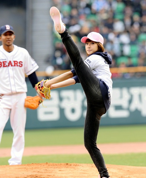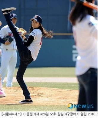 日韓職棒近來找正妹藝人開球正夯,不但可增加人氣,又可讓球迷看見明星到底對於運動在不在行,而近來發現,這些女藝人開球都有個共同點,那就是都先用「一字馬」動作讓觀眾驚呼,就算球提早落地也可得滿堂采,就連18日韓國團體 Victoria成員宋茜為職棒斗山熊隊開球也不例外。