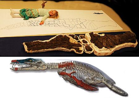 這些動物在溫暖的海水中自由遨遊,死後沉入海底,它們的骨骼在海底的軟泥中保存下來。目前科學家已經確定大約40塊骨骼的年代,大部分都屬于長頸蛇頸龍和海豚形狀的魚龍。去年他們還發現另一具上龍化石樣本。胡魯姆說:“它有望和第一只一樣大。”