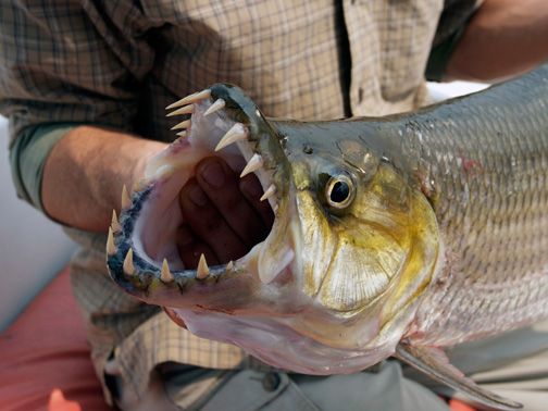 黃金猛魚(Goliath Tigerfish)是世上最令人生畏的淡水魚之一,其體型及凶猛程度,南美洲亞馬遜河的食人魚相比起來,根本是小兒科。黃金猛魚(Goliath Tigerfish)有卅二枚利齒,據說曾攻擊人類及鱷魚。