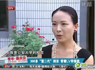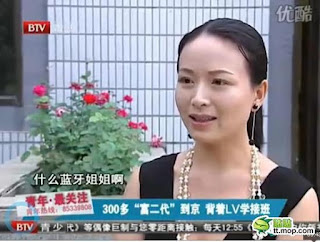 7 月22日,一位新的網絡紅人誕生了,她就是 “藍牙姐姐”。之所以能一夜爆紅,因為她幾乎具備所有成為網絡紅人的條件:富二代、校花、性感、時尚。最先發現藍牙姐姐的是北京一家媒體,他們在採訪 300多位富二代的時候,注意到了這個氣質特別的女孩,並為她冠以最時尚富二代的頭銜。在採訪過程中,藍牙姐姐也始終應對從容,絲毫不避諱在攝像機前展示自己的魅力:“我是公安大學的校花,我在公安大學的粉絲有十萬吧。”這是藍牙姐姐面對鏡頭說的第一句話,隨後她又介紹說:“上網可以搜索到藍牙姐姐,百度一下,可以看到我的相關信息和照片。”