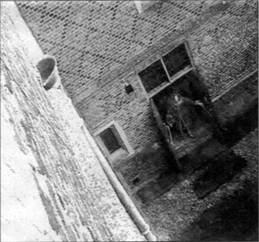 這捲監視錄影帶拍攝時間是在10月中旬,畫面中可以看到一個穿著中古世紀服裝的人,從漢普頓宮皇宮的一道側門門口往外步出,他一手伸向門把,一下把門打開,一下又把門關上。他的臉上彷彿帶著骷顱面具,因為與他的手的膚色相較,臉色白得很不協調。