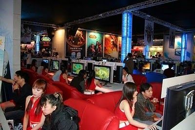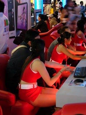 於是我們換個想法,改用「辣妹網咖」作為關鍵字搜尋,果然找到許多與原信相同的轉貼文章。其中在一個討論中,有網友指出該照片是出自2006台北國際電玩展,並非什麼大陸高級網咖(辣妹網咖)。